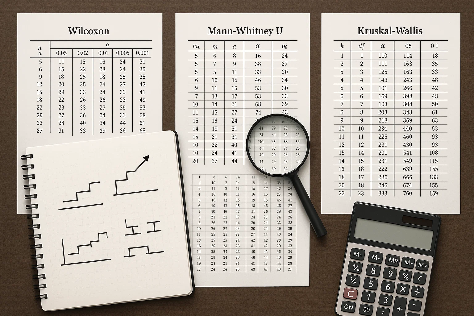 Artikel ini hadir sebagai panduan cepat yang bisa sobat bookmark atau simpan kapan pun butuh melihat kembali nilai-nilai kritis untuk uji-uji non parametrik populer. Tak hanya tabel, kami juga sertakan sedikit penjelasan biar sobat nggak cuma menyalin, tapi juga paham cara bacanya.